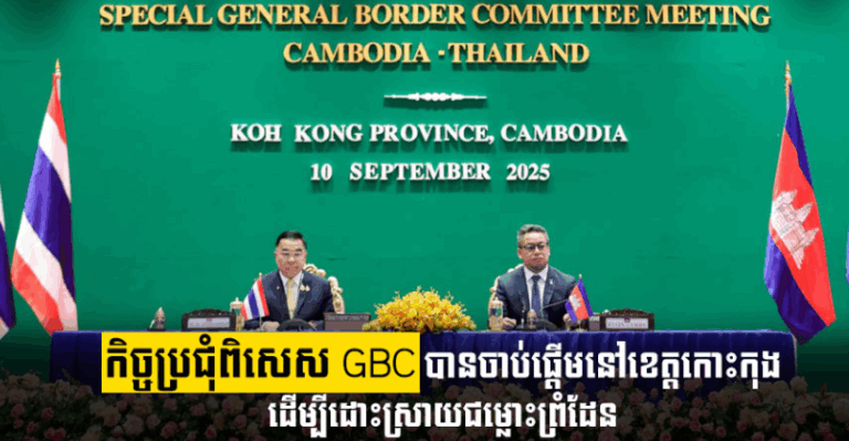 (កោះកុង)៖ កិច្ចប្រជុំពិសេស គណៈកម្មាធិការព្រំដែនទូទៅកម្ពុជា-ថៃ (Extraordinary GBC Meeting) បានចាប់ផ្តើមហើយ នៅព្រឹកថ្ងៃទី១០ ខែកញ្ញា ឆ្នាំ២០២៥នេះ ដោយកម្ពុជាធ្វើជាម្ចាស់ផ្ទះ នៅខេត្តកោះកុង។ ភាគីកម្ពុជា ដឹកនាំដោយ ឯកឧត្តមនាយឧត្តមសេនីយ៍ ទៀ សីហា ឧបនាយករដ្ឋមន្ត្រី រដ្ឋមន្ត្រីក្រសួងការពារជាតិ រីឯភាគីថៃ ដឹកនាំដោយលោក ណាត់តាផុន ណាក់ផានីត រដ្ឋមន្រ្តីស្តីទីការពារជាតិថៃ។ ការបើកកិច្ចប្រជុំនេះបានឡើងបន្ទាប់ពីបញ្ចក់កិច្ចប្រជុំលេខាធិការដ្ឋាននៃគណៈកម្មាធិការព្រំដែនទូទៅកម្ពុជា-ថៃ (GBC) ដែលបានប្រព្រឹត្តទៅនៅថ្ងៃទី៧-៩ ខែកញ្ញា ឆ្នាំ២០២៥ នៅខេត្តកោះកុង ក្នុងរយៈពេល ៣ថ្ងៃ ដោយក្រុមការងារលេខាធិការដ្ឋាននៃប្រទេសទាំងពីរ បានចូលរួមពិភាក្សាក្នុងបរិយាកាសប្រកបដោយមិត្តភាព និងស្ថាបនា ក្នុងគោលបំណងជំរុញកិច្ចសន្ទនាប្រកបដោយផ្លែផ្កា លើកកម្ពស់ការកសាងទំនុកចិត្ត និងស្វែងរកកិច្ចសហប្រតិបត្តិការជាក់ស្តែង ដើម្បីត្រៀមសម្រាប់កិច្ចប្រជុំពិសេសរបស់គណៈកម្មាធិការព្រំដែនទូទៅកម្ពុជា-ថៃ (GBC)។ តាមការប្រកាសរបស់ក្រសួងការពារជាតិ Read more