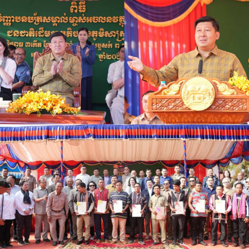 រដ្ឋមន្រ្ដីក្រសួងរៀបចំដែនដីលើកឡើងថា ការប្រគល់ប័ណ្ណជូនបងប្អូនជនជាតិដើមភាគតិចនាពេលនេះ សំដៅបញ្ចប់ភាពមន្ទិលលើការកាន់កាប់អចលនទ្រព្យរវាងដីឯកជន និងសមូហភាពរបស់ជនជាតិដើមភាគតិច