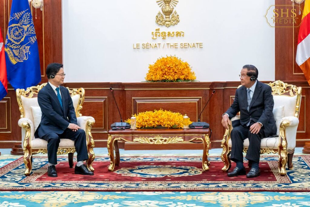 សម្តេចអគ្គមហាសេនាបតីតេជោ ហ៊ុន សែន ប្រធានព្រឹទ្ធសភានៃព្រះរាជាណាចក្រកម្ពុជា អនុញ្ញាតជូនឯកឧត្តម គឹម ចាងយ៉ុង (KIM Chang Yong) ឯកអគ្គរដ្ឋទូតសាធារណរដ្ឋកូរ៉េ តែងតាំងថ្មីប្រចាំនៅកម្ពុជា ចូលជួបសម្តែងការគួរសម និងពិភាក្សាការងារ នៅវិមានសាមគ្គីភាព រាជធានីភ្នំពេញ នាព្រឹកថ្ងៃទី២៩ ខែមករា ឆ្នាំ២០២៦។
