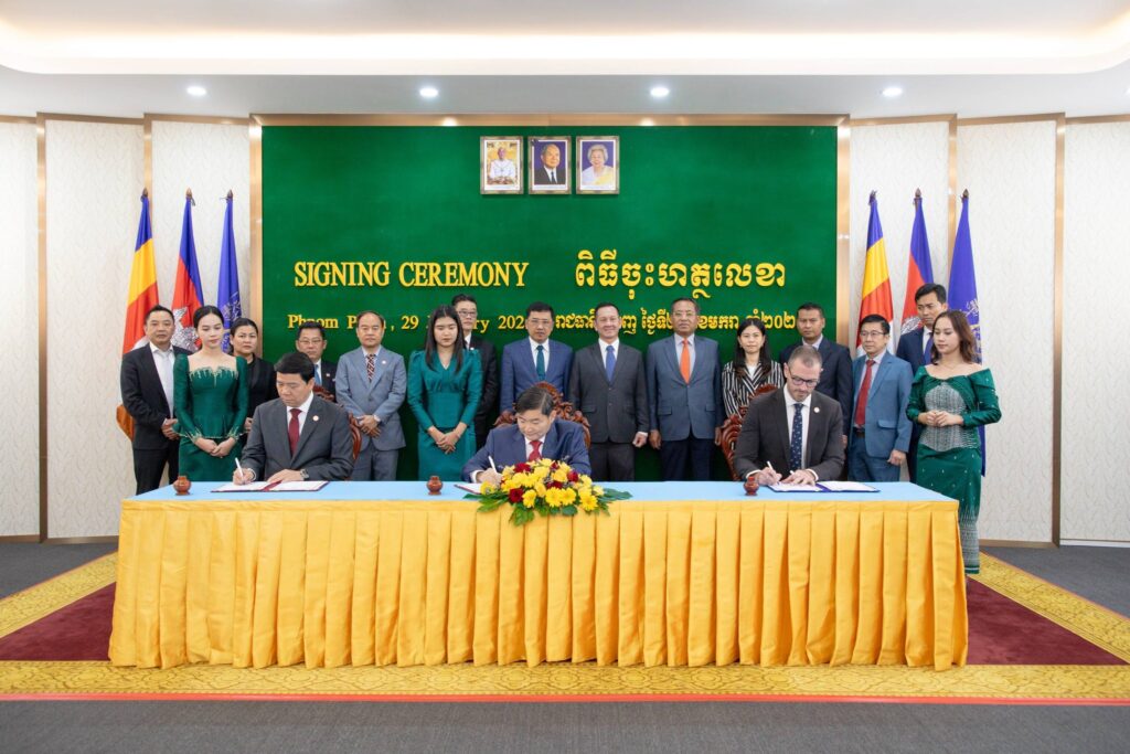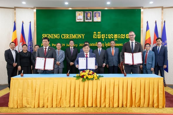 ភ្នំពេញ៖ ឯកឧត្ដម ហេង សួរ រដ្ឋមន្ត្រីក្រសួងការងារ និងបណ្ដុះបណ្ដាលវិជ្ជាជីវៈ លោក តាំង សិទ្ធី ប្រធានការិយាល័យតំណាងសភាពាណិជ្ជកម្មកម្ពុជាប្រចាំទីក្រុងម៉ែលប៊ន និងលោក Jeremy Crawford នាយកប្រតិបត្តិសភាពាណិជ្ជកម្មប្រចាំទីក្រុងហ្គីឡុង នៃរដ្ឋវីតូរីយ៉ា ប្រទេសអូស្ត្រាលី បានចុះអនុស្សរណៈនៃការយោគយល់គ្នា (MoU) ស្តីពី «សហប្រតិបត្តិការនៅក្នុងការផ្លាស់ប្តូរជំនាញ ការបណ្ដុះបណ្ដាលសិស្សហ្វឹកហាត់ និងការហ្វឹកហាត់ការងារ» នាព្រឹកថ្ងៃទី២៩ ខែមករា ឆ្នាំ២០២៦ នាទីស្តីការក្រសួង។