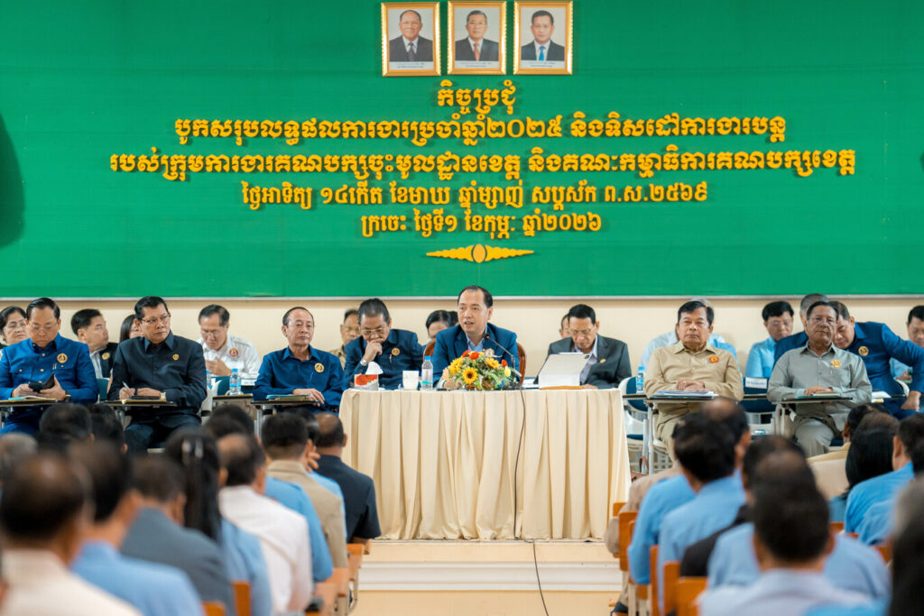 ឯកឧត្តម នេត្រ ភក្ត្រា សមាជិកគណៈកម្មាធិការកណ្តាលគណបក្សប្រជាជនកម្ពុជា និងជាប្រធានក្រុមការងារគណបក្សចុះមូលដ្ឋានខេត្តក្រចេះ អញ្ជើញជាអធិបតីកិច្ចប្រជុំបូកសរុបលទ្ធផលការងារគណបក្សប្រចាំឆ្នាំ២០២៥ និងលើកទិសដៅការងារបន្ត របស់ក្រុមការងារគណបក្សចុះមូលដ្ឋានខេត្តក្រចេះ នាព្រឹកថ្ងៃទី០១ ខែកុម្ភៈ ឆ្នាំ២០២៦។