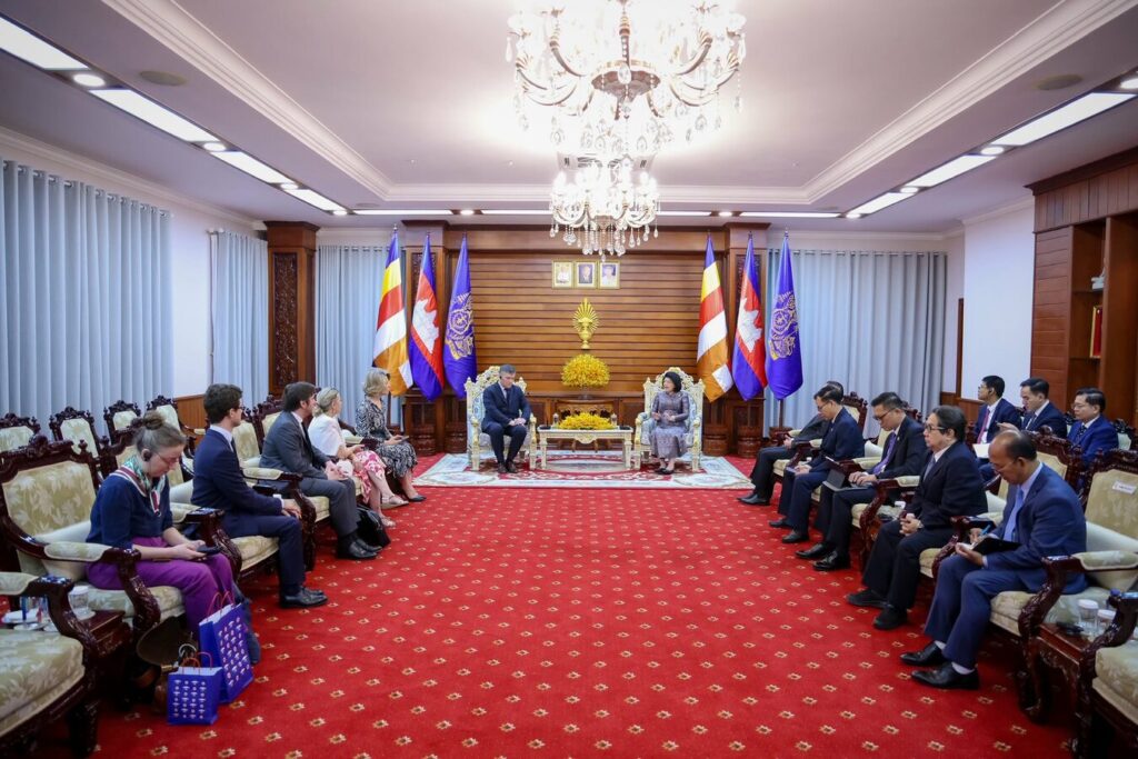 សម្តេចមហារដ្ឋសភាធិការធិបតី ឃួន សុដារី ប្រធានរដ្ឋសភា នៃព្រះរាជាណាចក្រកម្ពុជា នៅព្រឹកថ្ងៃអង្គារ ទី២៤ ខែកុម្ភៈ ឆ្នាំ២០២៦ នេះ បានអនុញ្ញាតឱ្យគណៈប្រតិភូសភានៃក្រុមមិត្តភាពសភាបារាំង-កម្ពុជា ដឹកនាំដោយ ឯកឧត្តម ថូម៉ាស ឡាំ (Thomas LAM) ចូលជួបសម្តែងការគួរសម និងពិភាក្សាការងារ នៅវិមានរដ្ឋសភា ក្នុងរាជធានីភ្នំពេញ។