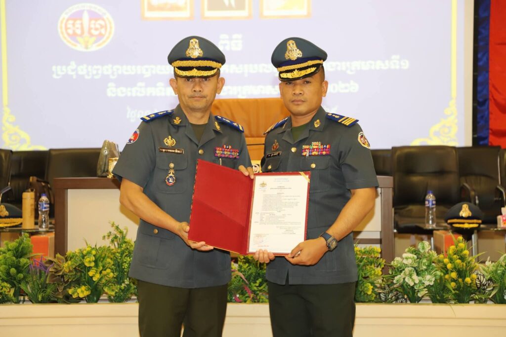 ខេត្តបន្ទាយមានជ័យ៖ នៅព្រឹកថ្ងៃពុធ ទី០៨ ខែមេសា ឆ្នាំ២០២៦ លោកឧត្តមសេនីយ៍ត្រី បោន ប៊ិន មេបញ្ជាការកងរាជអាវុធហត្ថខេត្តបន្ទាយមានជ័យ អញ្ជើញជាអធិបតីភាពក្នុងកិច្ចប្រជុំផ្សព្វផ្សាយរបាយការណ៍បូកសរុបលទ្ធផលការងារត្រីមាសទី១និងលើកទិសដៅការងារត្រីមាសទី២ ឆ្នាំ២០២៦ របស់កងរាជអាវុធហត្ថខេត្ត និងពិធីបំពាក់ស័ក្តិនិងប្រគល់សេចក្តីសម្រេចតម្លើងឋានន្តរស័ក្តិចំនួន៥រូប និងផ្លាស់ប្តូរមុខងារចំនួន៥រូប ជូនដល់យោធិននៃកងរាជអាវុធហត្ថខេត្ត។ កិច្ចប្រជុំនេះក៏មានការអញ្ជេីញចូលរួមពីសំណាក់លោកមេបញ្ជាការរង លោកនាយសេនាធិការរង លោកប្រធាន អនុប្រធានមន្ទីរទាំង៧ លោក-លោកស្រី នាយការិយាល័យ លោកមេបញ្ជាការ មេបញ្ជាការរងមូលដ្ឋានកងរាជអាវុធហត្ថក្រុង ស្រុក ទាំង៩ លោកប្រធានស្នាក់ការសន្តិសុខ និងកងកម្លាំងកងរាជអាវុធហត្ថសរុបចំនួន… កិច្ចប្រជុំប្រារព្ធធ្វេីឡេីងនៅសាលប្រជុំ ធំ អគារសេនាធិការដ្ឋានកងរាជអាវុធហត្ថខេត្ត បន្ទាយមានជ័យ។ នាឱកាសនោះលោកឧត្តមសេនីយ៍ត្រី បោន ប៊ិន មេបញ្ជាការ ក៏បានពាំនាំនូវប្រសាសន៍ផ្ដាំផ្ញើនិងសួរសុខទុក្ខពីសំណាក់លោកនាយឧត្តមសេនីយ៍ សៅ សុខា អគ្គមេបញ្ជាការរង នៃកងយោធពលខេមរភូមិន្ទ មេបញ្ជាការកងរាជអាវុធហត្ថលើផ្ទៃប្រទេស ជូនចំពោះនាយទាហាន នាយទាហានរង និងពលទាហាន នៃកងរាជអាវុធហត្ថទាំងអស់ដោយក្តីនឹករលឹកផងដែរ។ ព្រមទាំងបានគោរពដល់ដួងវិញ្ញាណក្ខន្ធវរៈកងទ័ព ពិសេសអាវុធហត្ថដែលបានពលីនៅក្នុងសមរភូមិប្រយុទ្ធតតាំងជាមួយនឹងសត្រូវឈ្លានពាន និងការពារបូរណភាពទឹកដីនាពេលកន្លងមក។ ជាមួយនឹងកិច្ចការងារដែលសម្រេចបាននាពេលកន្លងមកលោកឧត្តមសេនីយ៍ត្រី បោន ប៊ិន ក៏បានថ្លែងការកោតសរសេីរដល់អាវុធហត្ថទាំងអស់ដែលបានខិតខំបំពេញតួនាទី ភារកិច្ច និងបម្រើពលរដ្ឋបានយ៉ាងល្អប្រសេីរ។ ក្នុងនោះលោកឧត្តមសេនីយ៍មេបញ្ជាការកងរាជអាវុធហត្ថខេត្តក៏បានជម្រុញបន្ថែមដល់កម្លាំងកងរាជអាវុធហត្ថទាំងអស់ ត្រូវយកចិត្តទុក្ខដាក់ក្នុងការអនុវត្តតួនាទី ភារកិច្ច របស់ខ្លួនឱ្យបានល្អប្រសេីរ និងចូលរួមអនុវត្តគោលនយោបាយ ភូមិ ឃុំ-សង្កាត់ មានសុវត្ថិភាព ឱ្យបានខ្ចាប់ខ្ជួន បង្ក្រាបរាល់បទល្មេីសនៅក្នុងមូលដ្ឋានរបស់ខ្លួនមានដូចជាក្មេងទំនេីង ល្បែងស៊ីសង ពិសេសបទល្មើសគ្រឿងញៀនជាដេីម។ សូមបញ្ជាក់ថា ក្នុងពិធីបំពាក់ស័ក្តិនិងប្រគល់សេចក្តីសម្រេចតម្លើងឋានន្តរស័ក្តិ និងផ្លាស់ប្តូរមុខងារ ក្នុងនោះលោកអនុសេនីយ៍ឯក តិល តៃលីវ នាយការិយាល័យសន្តិសុខផ្ទៃក្នុង មន្ទីរកសាងកម្លាំង បញ្ជាកាដ្ឋានកងរាជអាវុធហត្ថខេត្តបន្ទាយមានជ័យ ត្រូវបានប្រកាសតែងតាំងជាមេបញ្ជាការមូលដ្ឋានកងរាជអាវុធហត្ថក្រុងប៉ោយប៉ែត ជំនួសលោកវរសេនីយ៍ត្រី នួន នីណារ៉