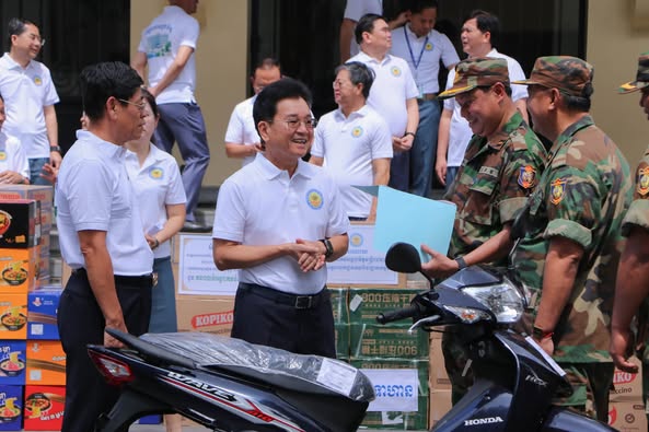 កាលពីព្រឹកថ្ងៃទី១១ ខែសីហា ឆ្នាំ២០២៥, ឯកឧត្ដមបណ្ឌិត គុណ ញឹម រដ្ឋមន្ត្រីប្រតិភូអមនាយករដ្ឋមន្ត្រី អគ្គនាយកនៃអគ្គនាយកដ្ឋានគយនិងរដ្ឋាករកម្ពុជា និងជាប្រធានសមាគមសង្គហមិត្តមន្ដ្រីរាជការនៃអគ្គនាយកដ្ឋានគយនិងរដ្ឋាករកម្ពុជា និងថ្នាក់ដឹកនាំ ព្រមទាំងមន្ដ្រីគយនិងរដ្ឋាករមួយចំនួនបានប្រគល់អំណោយរបស់សម្ដេចមហាបវរធិបតី និងលោកជំទាវបណ្ឌិត ជា សម្ភារៈ/បរិក្ខារ គ្រឿងឧបភោគបរិភោគ និងថវិកាមួយចំនួន ប្រគល់ជូនកងពលធំអន្ដរាគមន៍លេខ ២ ដែលជាអង្គភាពសម្ព័ន្ធមេត្រីភាពជាមួយអគ្គនាយកដ្ឋានគយ និងរដ្ឋាករកម្ពុជា ។